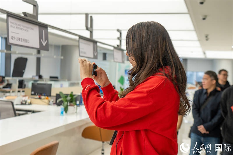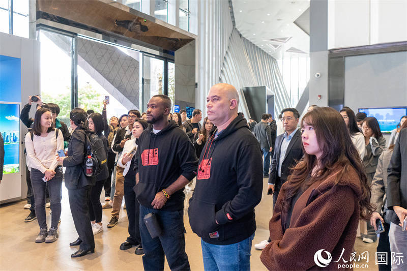 记者团在深圳出海e站通参观采访。人民网记者 许峥摄